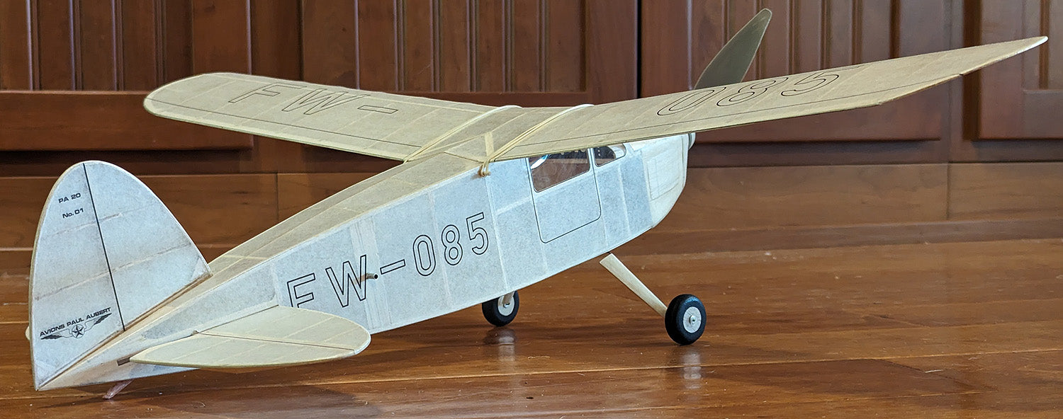 A great-flying French pre-War High-Wing Cabin model. The 26" span makes a nice medium-sized plane. It features square, slab-sided construction and a straight wing.
