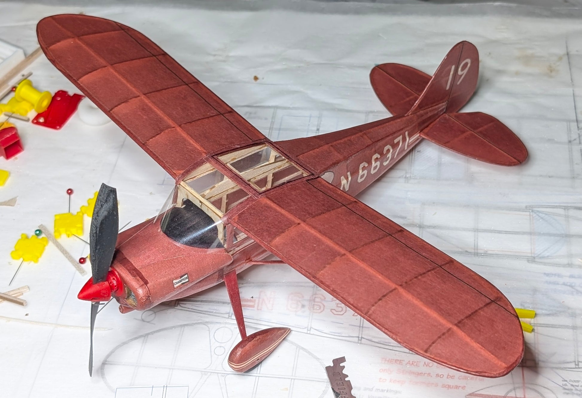 This short kit contains: 3 pieces of laser-cut balsa, a plan and a 3D-printed tail wheel.