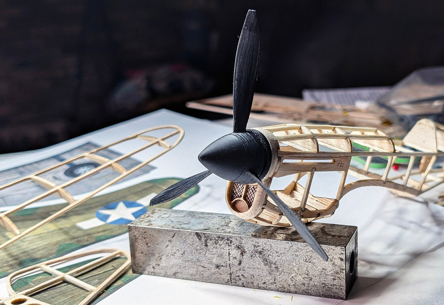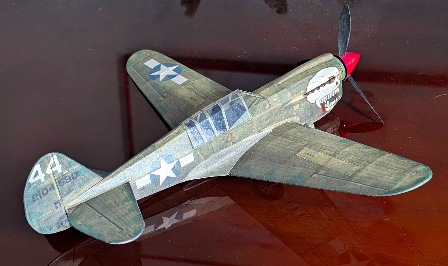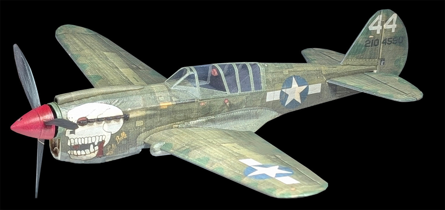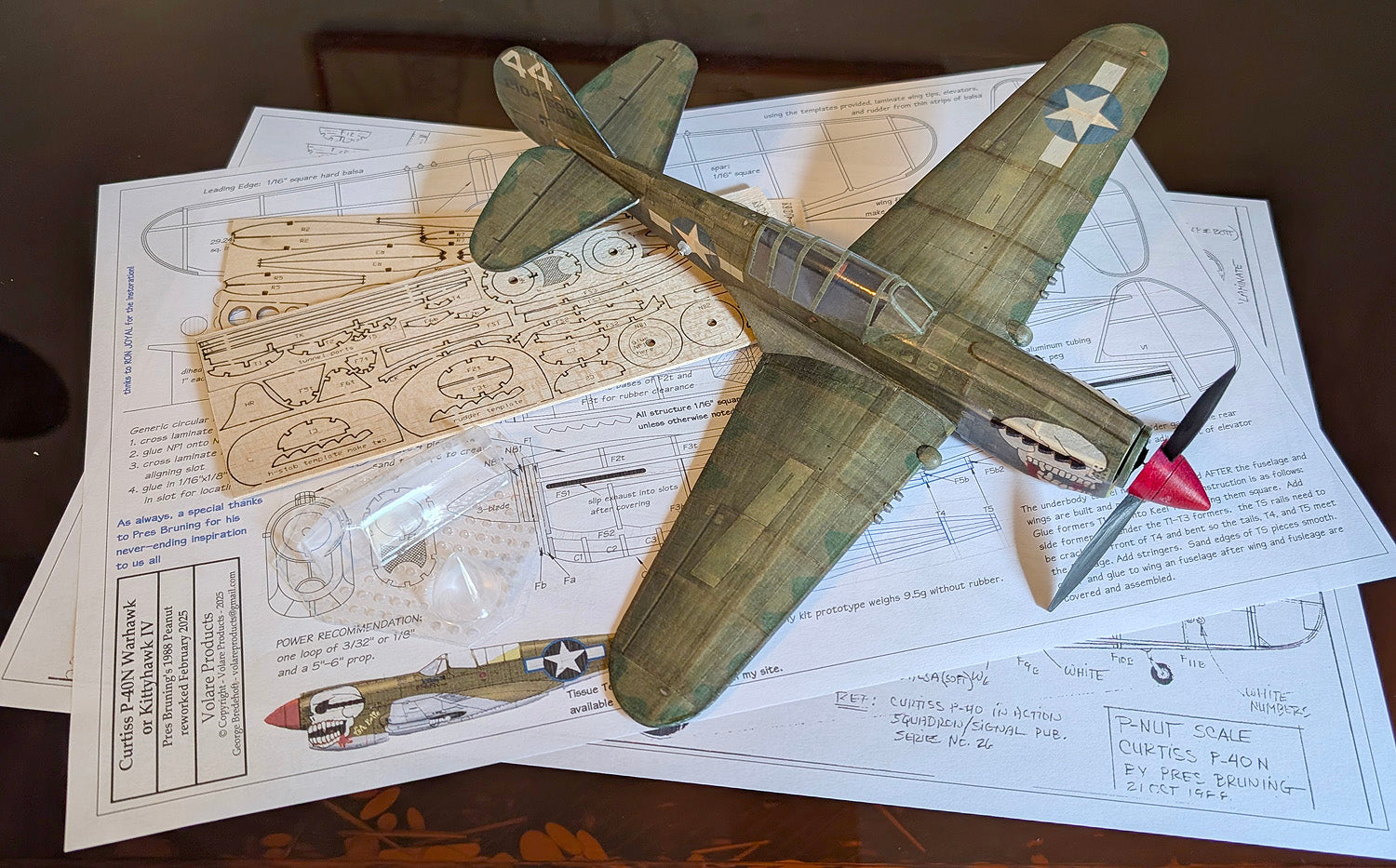 The P-40N Warkawk (British Kittyhawk IV) in Peanut Scale WITH vacu-formed Canopy and Spinner. This is based on Pres Bruning's plan, which is also included.