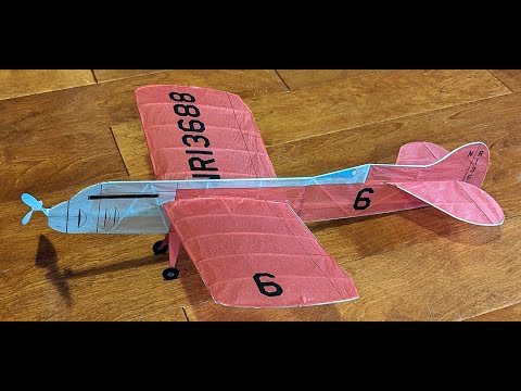 This is designed for Indoor flying and the parts will be cut from 6# or less sheet balsa. An indoor prop suggestion is shown on the plan. It could be flown outdoors if the wing was beefed up a little.